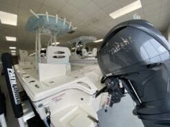 JL Audio Speakers for hardtop, 2 white Raw Water Washdown System Fresh Water Washdown Fish Box pump-out with macerator, forward Rod Rack with (4) rod holders and (2) Kingfish Rod Holder for Hard Top (Bolt On) Garmin 12 in Touchscreen with Sonar (GPSMAP 8612XSV) Xi5-105SW 60″ GPS 36V |
