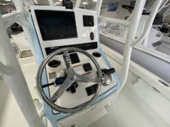 | No Rigging Hydraulic Steering Jackplate 6″ GEM Stainless Steel Trim Tabs Hull Color Hull Color Pattern Hull Side Color to Chine Hull Color Hull 2-Tone Pure White Deck Color Deck Color Pattern Solid Helm Seating Helm Seat Show ImageTackle Station Cushions Cushion Color White Raw water washdown system Anchor lockerBoarding ladderCenter console full forward access w/ dutch doorsLarge guttered, gasketed, locking dry storage compartment (4)Self-bailing cockpitCooler mounted in front of console w/ cushion set (deluxe Engel cooler) CompassConsole Windshield & GrabrailFlush-mount Bow Cleat (6 in)Flush-mount Stern Cleat (2)In-deck Castnet Storage LockerInsulated Fish Box (43 gal)Locking Rod Storage (port & stbd)Console rod rack (2, 4-bank)Flush-mount gunnel rod holder (4)Under-gunnel rod storageTM wiring system complete with battery tray(s) Cockpit lights, compass & helm footrestNavigation lights, LED (console) |