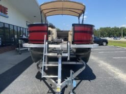 NEW UPGRADED Dash Design Base & Deluxe Fish Models NEW Center Dash GO5 SIMRAD GPS 25″ Triple-toon Performance Pkg Hydraulic Tilt Steering Full-length Lifting Strakes Integrated Performance Motor Pod Industry-Leading 0.100 gauge pontoon tubes Veranda Fish 4-Point Fish Seating Group High Back Recling Helm Chair 4 Fishing Seats Mid-Cabin L-Chaise Bench with Onboard Cupholders Aft Sun Deck with Expanded Storage Free-standing Livewell with Seat Cushion Lid Rod Box Blended Latte OR Carbon and Dove Upholstery Bluetooth Kicker Audio Bow Entry Half-Gate Powder Coat Rails with Choice of Color Rotational Molded Wood-Free Seat Bases with Water Management and Storage |