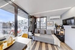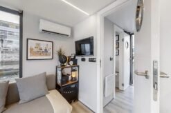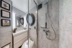 Apart XS is a kind of a floating house that has everything that holiday flats offer: a full-size toilet, a furnished kitchen with a fridge, sink, gas or induction cooker. This is the smallest boat on displacement hull from our offer thus should dock to any European harbours.
