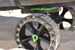 When it comes to moving loads over soft sand, wider wheels are not necessarily better. Bulldozers and military tanks use long tracks, reducing the chance of them digging in. SandTrakz’ puncture free wheels mimic this track system. When in use, the outer rim compresses, giving it a longer track length. On soft sand this reduces how hard you have to pull to move your cart. In fact, the SandTrakz system is so effective we think it’s better than balloon wheels! Whilst they are designed to make life easier on soft surfaces, SandTrakz wheels are great on hard surfaces. Because C-TUG SandTrakz are designed to compress, they act like suspension on hard surfaces, making for easy transition from soft to hard surfaces.