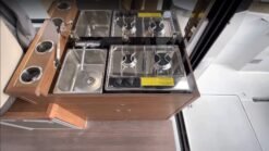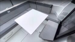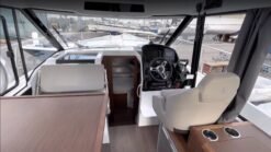 Multiple details are what distinguishes the Merry Fisher 895 for sale model. In the cockpit we can find features like an L-shaped living room, reclining seat backrests and cup holders in the armrests for an unmistakable experience and incomparable comfort. Both the inside and outside seatbacks are adjustable and pivotal, which gives incredible freedom and comfort of sitting. Control and steering ergonomics on board is intuitive and simple as walking in the park! Jeanneau 895 is a planing hull boat where you can feel and experience the speed.