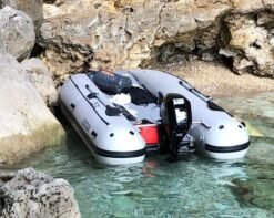 The packed up tube size is 0.85m x 0.7 m x 0.35m x 32kg, floor + transom additional. With it’s 4 + 1 safety chambers, raised floor and open / removable transom design the Takacat 420 LX is well suited to a wide variety of uses such as flood rescue, coach and support boats through to the true adventurer.