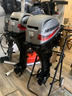 Mariner 15hp MLH model, 2015, 4 stroke. Long shaft, tiller handle, recoil start.